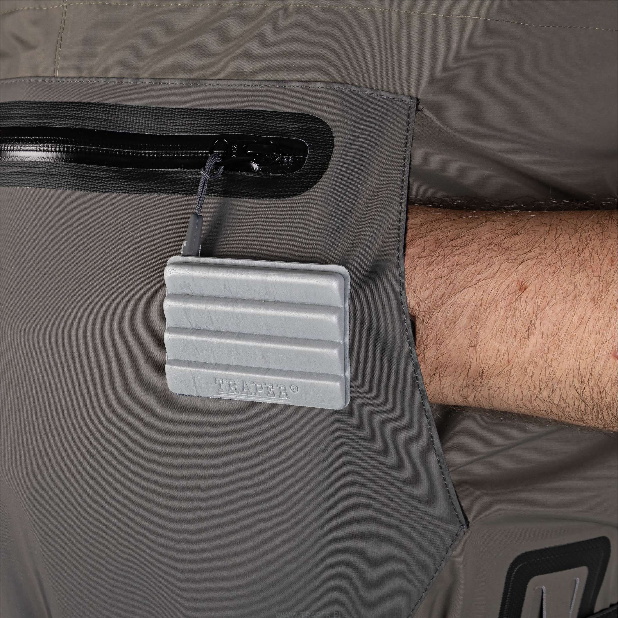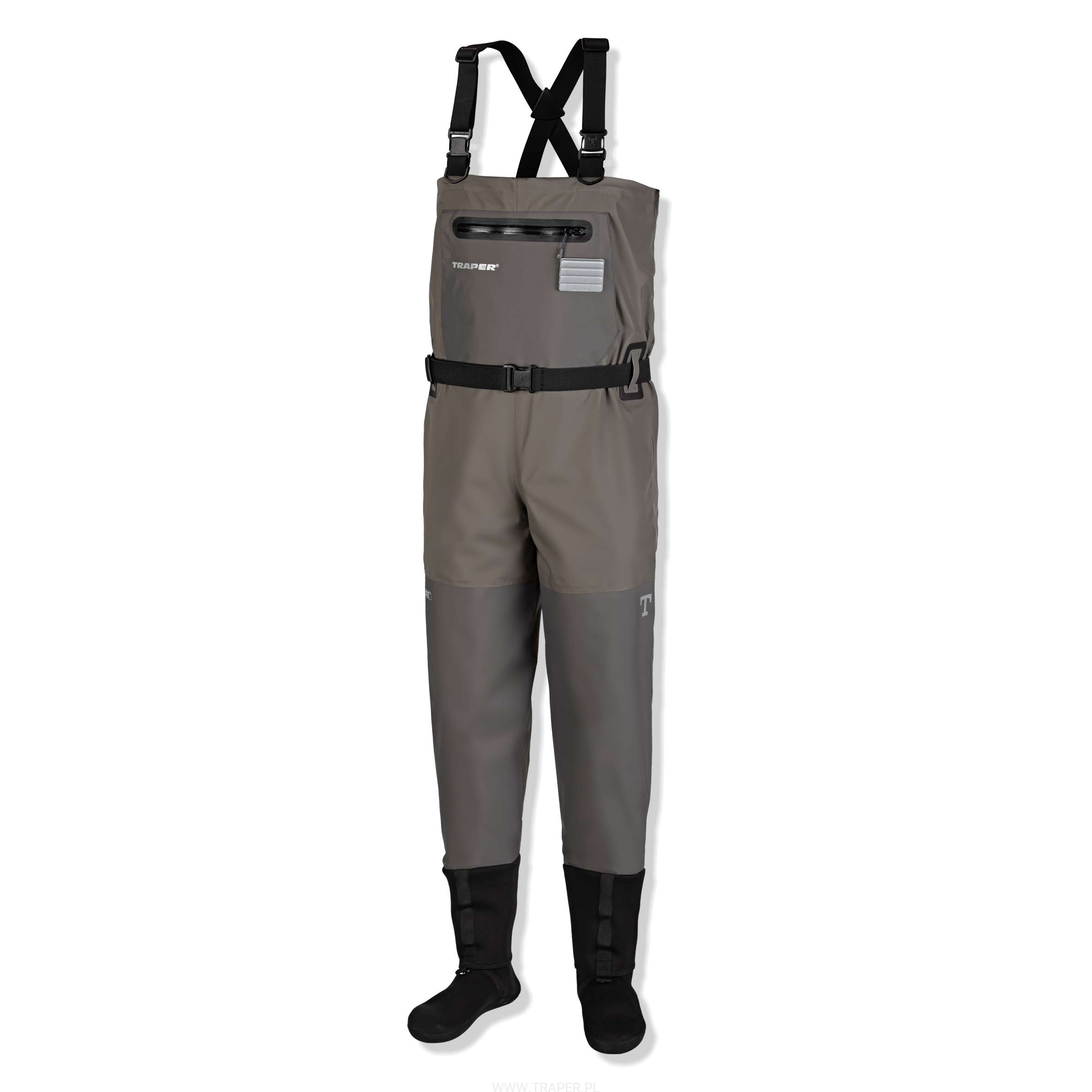 Brook waders have been manufactured of the three layer, Korean Aqualight Fabric. The waders differs from the other in shape. The legs are sewn on the outside (there is no seam inside), what gives higher abrasion resistance and makes your moves free. The socks are made of the thick, 5 mm neoprene. The anti – gravel protection is placed above the sock. There is the warming up, fleece padded pocket on the top. There is the splash proof YKK zippered pocket for accessories as well as the inside zippered pocket. The waders are equipped with the elastic waist belt and the comfortable suspenders. Attention! In waders with warming hand pockets, it is possible to wade in the water reaching maximum to the lower edge of these pockets. Otherwise leaking of the water inside the waders may occur.