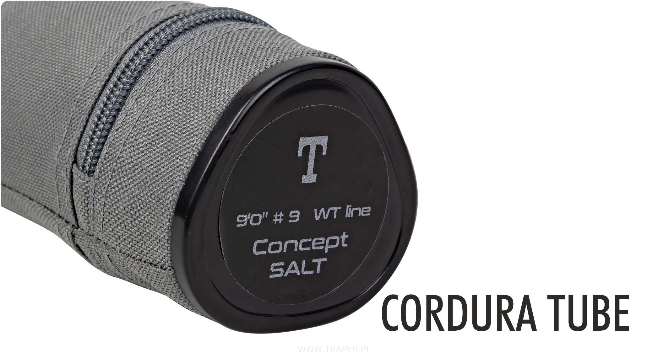 A reliable and robust tackle is required for fighting unbelievably strong fish living in seas and oceans. This is the purpose that the Concept Salt was invented for. Japanese, unpolished 40T blank is tested and reliable material. American Pacific Bay guides were used on it. The sections are spigot jointed. This results in even and dynamic rod action. Robust, large reels require reliable and robust seats. Our rod's seat, made in the CNC technology of the highest quality aluminum is such. The aluminum insert, double screwing with the counter screw ensure sure reel mounting. The handle is manufactured of the Portuguese AAAA cork, very strong rubber cork was used for finishing. The Cordura tube for safe rod transportation.