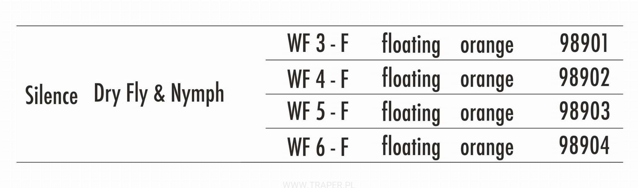Product code: FLY FISHING LINE SILENCE DRY FLY & NYMPH WF - F TRAPER