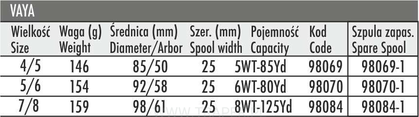 VAYA: Spanish for 'Go!', as in go outside, go e xplore, go fishing! Craed by avid Colorado anglers, the VAYA series debuts an all-new technical look and feel paired with outstanding performance. The parally-ported VAYA frame offers the unique combinaon of minimized weight, incredible rigidity, and just enough surface area to highlight Abel's hand-anodized finishes. The frame interior also features varying sets of CNC-milled fly paerns, relevant to each size of reel. The large-arbor spool features a precision-balanced, dual-pawl drag engagement design that eliminates the need for a counterweight. The spool's mechanical incoming click compliments the audible, smooth feel of the outgoing drag. The carbon / stainless mul-disk drag system produces substanal resistance, while providing a wide range of adjustability for delicate ppet. VAYA: the new 'go-to' reel for everything from freshwater to light salt.