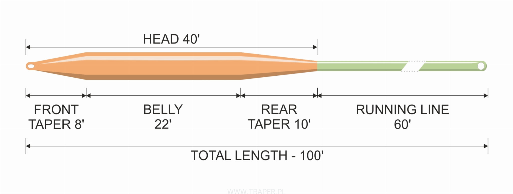 Specialist line purposed fir fishing with small flies on medium and large distances. Especially designed, optimum head shape enables far casts and subtle fly presentation. The head is peach while running light green. Durable, smooth surface makes casting easy and ensures long time use. Both ends are looped for easy leader and backing mounting. The line type and size is printed on the front part of the head.