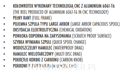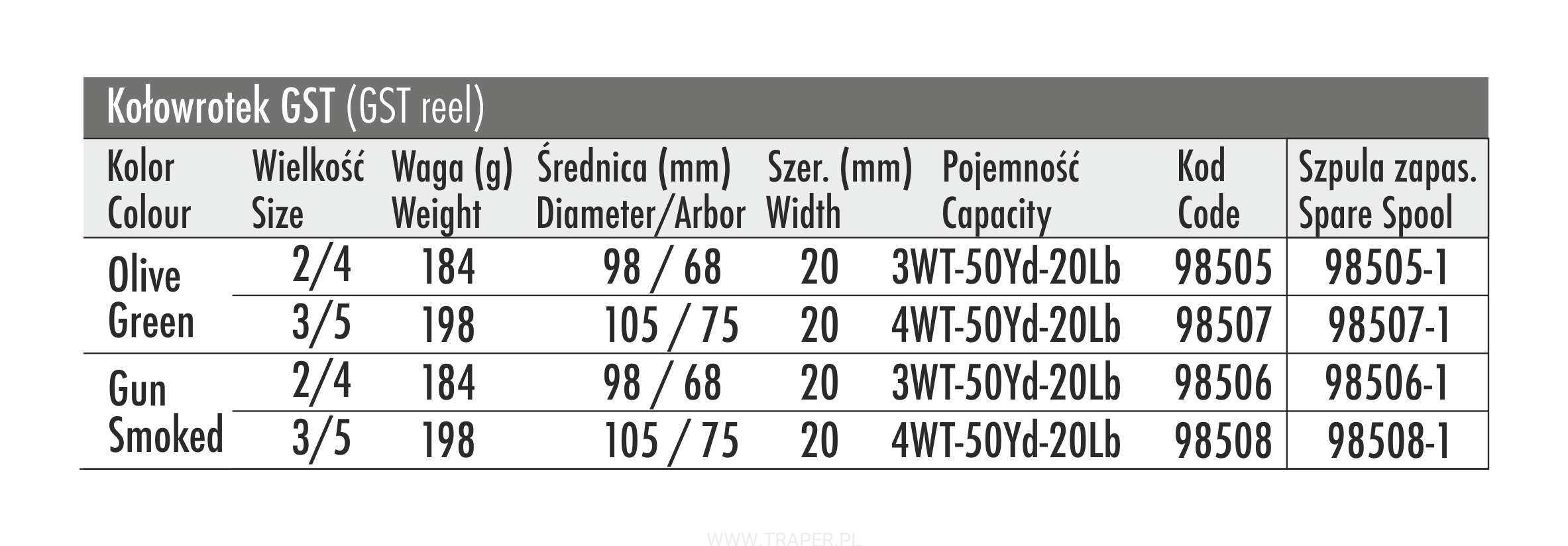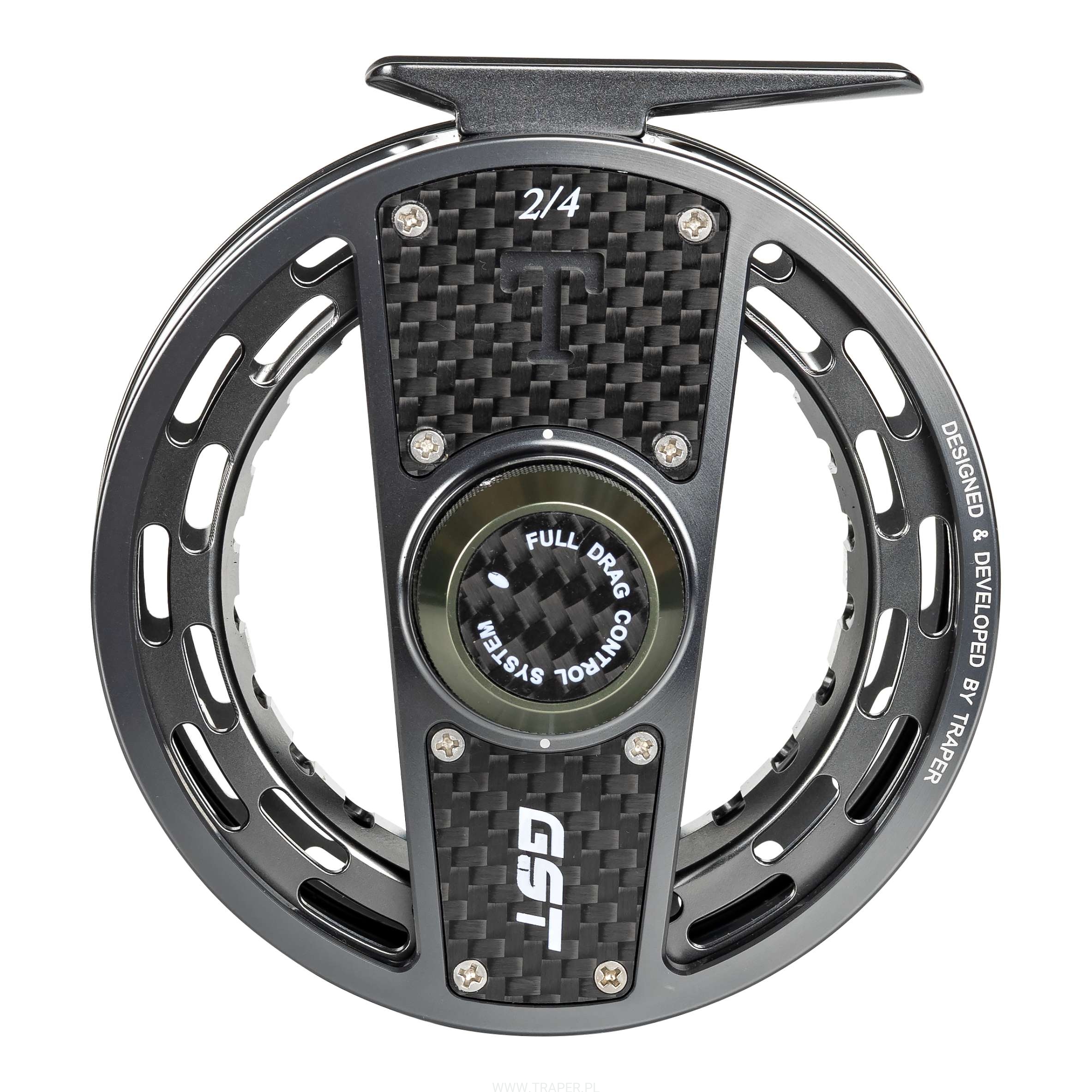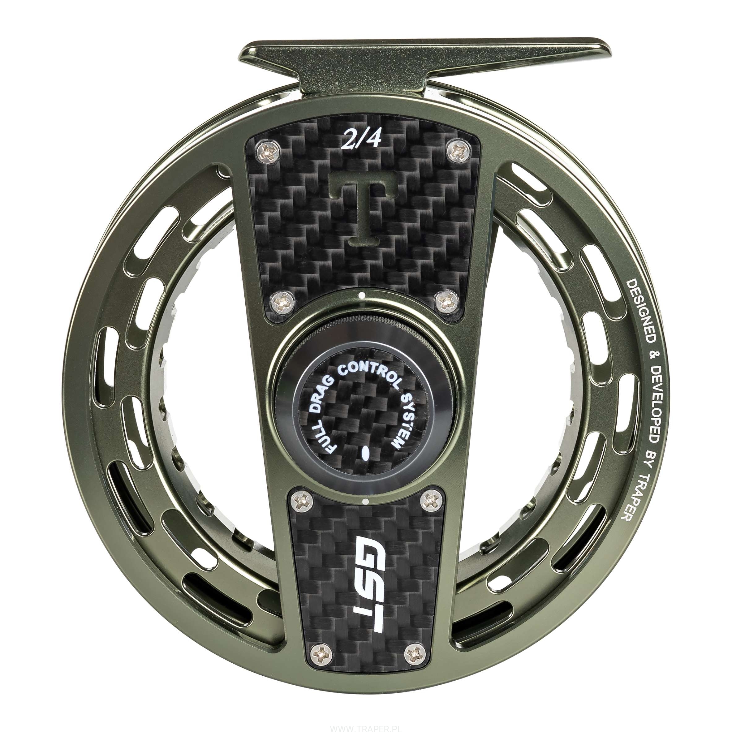 Specialist reel for competition anglers. The large capacity of the body and spool enables quick line retrieve, what is vital during contest rivalry. The construction bases on the full frame, what gives additional strength and prevents from entering the line under the spool. The reel is made in the CNC technology of the highest class air aluminum 6061-T6. The asymmetric reel foot is an innovative solution. Such a construction enables moving the reel maximally back. This moves the gravity centre back, speeds up the reaction for the bite and makes the rod manoeuvring easy. The modern reel construction combines the aluminum with carbon. The drag is the heart of this reel. In the robust housing the multidisc, smooth Thanks to its precision we will not loose any fish even when using the thinnest leader. The GST 2/4 reel is dedicated for the 10'6 and 11 foot rods while 3/5 for 11 footers and longer