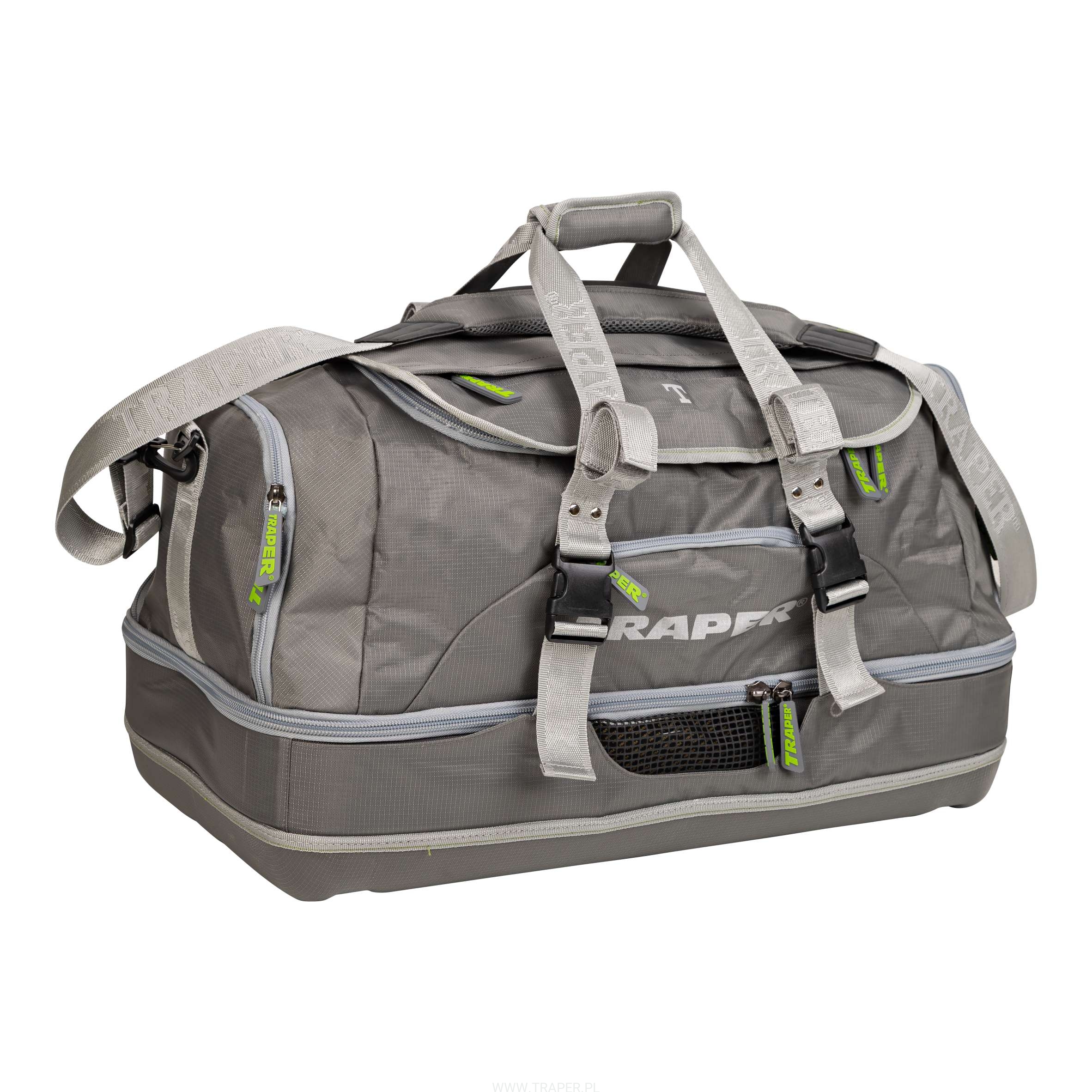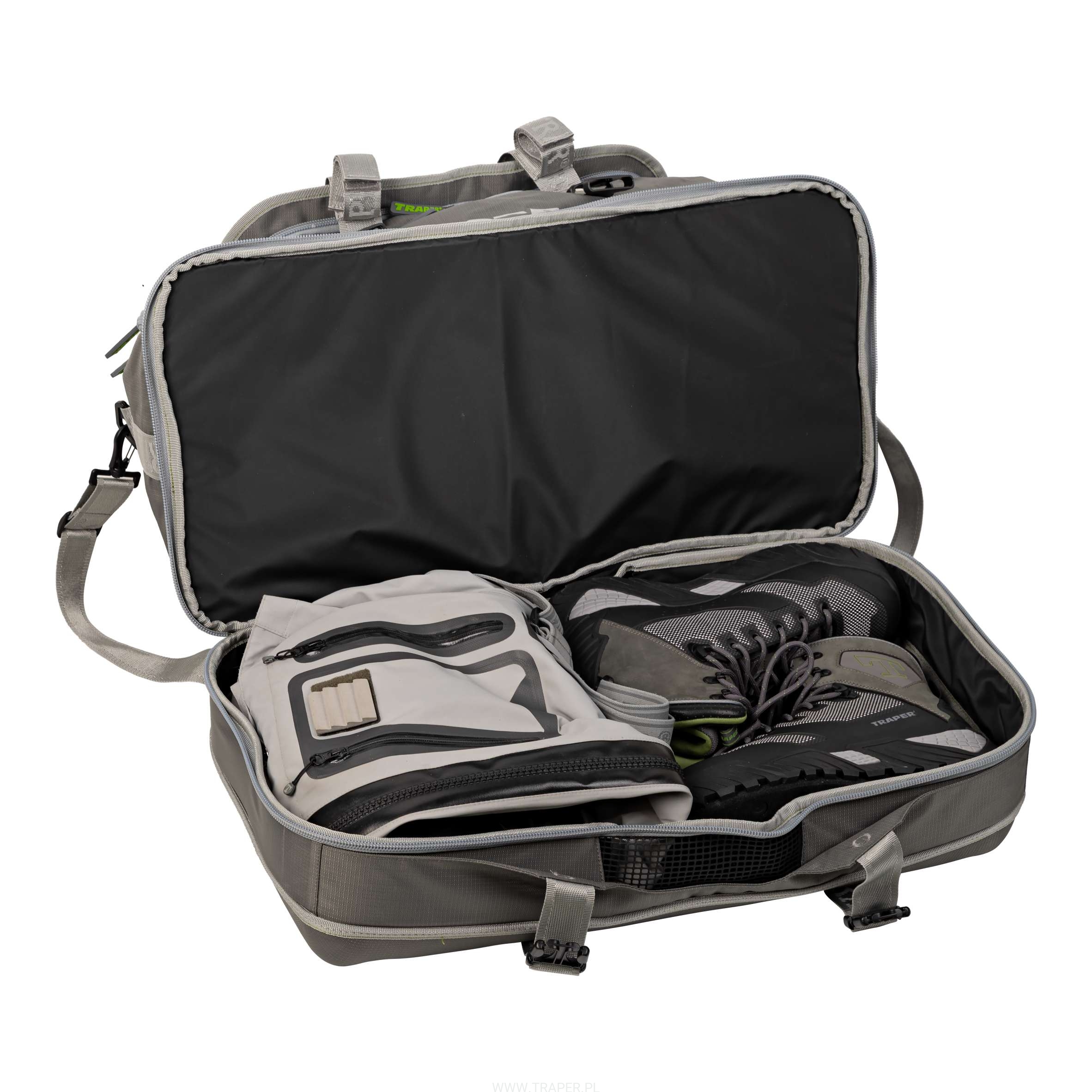 The main advantage of this bag is a possibility to keep the waders and boots separately from the light clothing. Stiffened sides and the bottom make packing of the stiff and heavy things easy. Ensuring the perfect protection against the damage. The net window enabling evaporation of the humidity excess. Capacious main chamber will take light clothing and jackets with ease. There is a dirty clothes container in one of the pockets. Size: 63x33x35