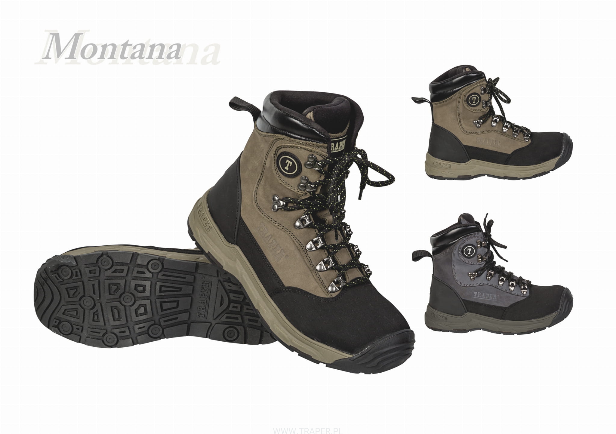 Buty do brodzenia Montana TRAPER wykonane są z niezwykłą starannością, przy użyciu najwyższej jakości tworzyw i naturalnej skóry. W newralgicznych punktach zostały dodatkowo wzmocnione i pogrubione. Podeszwa wykonana jest z trzech warstw, z których środkowa jest twarda, dzięki temu rozwiązaniu nie odczuwamy uciążliwości chodzenia po kamienistym dnie. Gniazda wkrętów antypoślizgowych utrzymują je solidnie dzięki usztywnionej warstwie. Idealny profil cholewki sprawia niezwykły komfort w trakcie użytkowania.