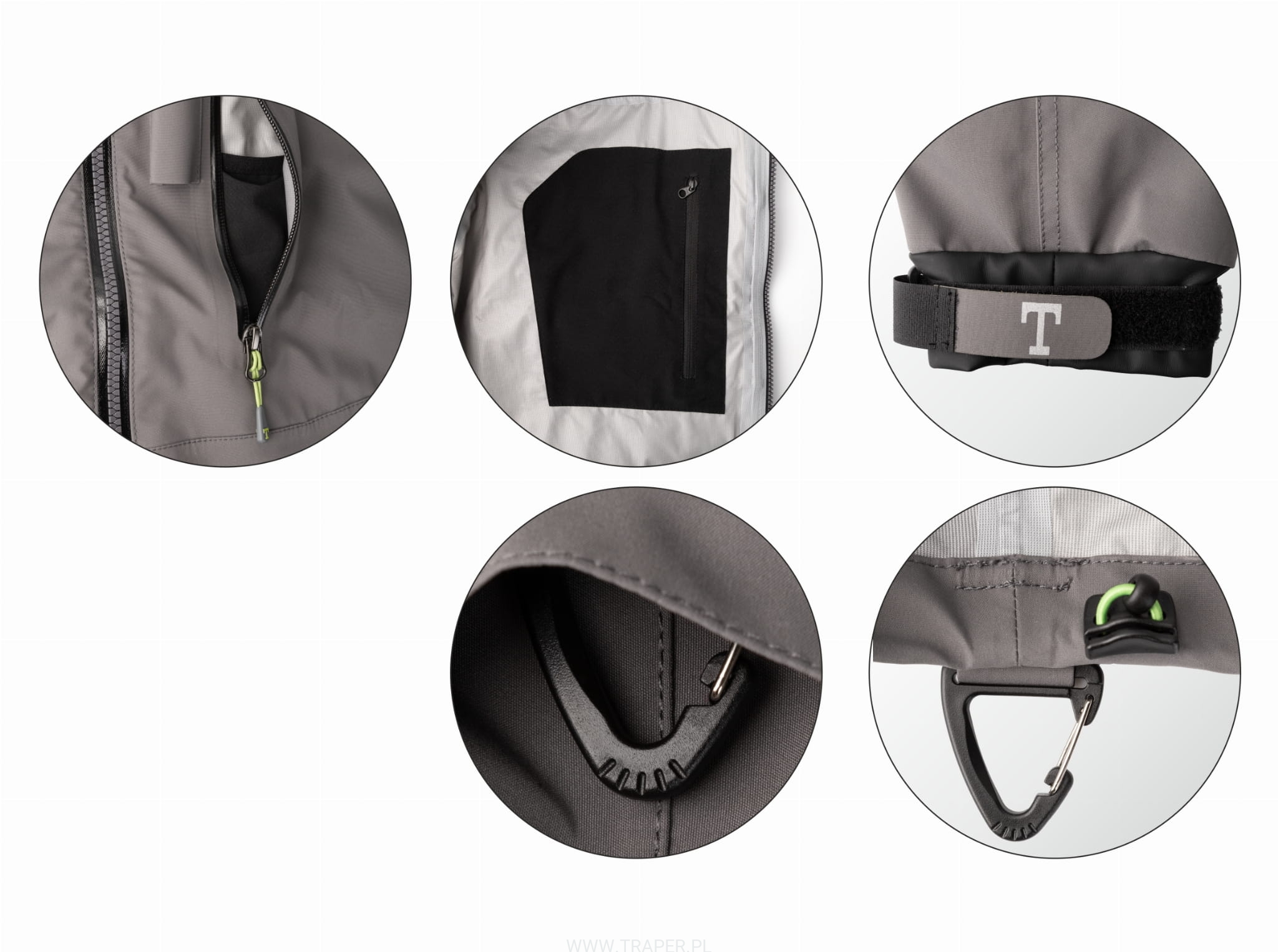Wykonana z najwyższej jakości, 3 warstwowego, japońskiego materiału DERMIZAX firmy TORAY, kurtka to synonim trwałości, ochrony przed warunkami atmosferycznymi i niezrównanej oddychalności. Jej funkcjonalność to efekt starannego zastosowania wszystkich niezbędnych elementów, gwarantujących komfort i wygodę podczas każdej wędkarskiej przygody. Praktyczne rozwiązania umieszczone z przodu kurtki, takie jak napka na przynęty i kryte, sprężynowe zaczepy, zapewniają wygodny dostęp do przynęt i niezbędnych akcesoriów. Dodatkowo, dwie kieszenie na pudełka z elastycznymi przegrodami na żyłki przyponowe i akcesoria umożliwiają sprawną organizację. Dla dodatkowego komfortu, kurtka Montana wyposażona jest w dwie zasuwane kieszenie wyścielane fleecem, idealne do ogrzania rąk w chłodniejsze dni. W dolnej części , po bokach umieszczone są dwa otwierane karabińczyki oraz ściągacz pasa z regulacją. Ochrona przed nieprzewidywalnymi warunkami atmosferycznymi to priorytet. Dlatego kaptur, zintegrowany z wysokim kołnierzem i obszyty miękkim fleecem, posiada podwójną regulację, zapewniając idealne dopasowanie. Dodatkowo, z tyłu pod kapturem znajduje się kryty, otwierany karabińczyk do zaczepienia podbieraka. Wnętrze kurtki skrywa praktyczną zamykaną kieszeń, umożliwiającą bezpieczne przechowywanie dokumentów. Rękawy zakończone szczelnym i wygodnym ściągaczem, regulowanym na rzep, gwarantują doskonałe dopasowanie i ochronę przed dostaniem się wody do wnętrza. Odkryj nową jakość, komfort i funkcjonalność wędkarskiej odzieży dzięki kurtce Montana. Niezawodna ochrona, doskonałe dopasowanie i praktyczne detale sprawiają, że Twoja przygoda z wędkarstwem stanie się jeszcze bardziej emocjonująca. Kurtka Montana Insulated jest ocieplona niezwykle ciepłym wypełnieniem PrimaLoft Black. Daje to gwarancję utrzymania ciepła w najchłodniejsze dni. W korpusie kurtki zastosowano PrimaLoft Black 80g. Rękawy i kaptur PrimaLoft Black 60g