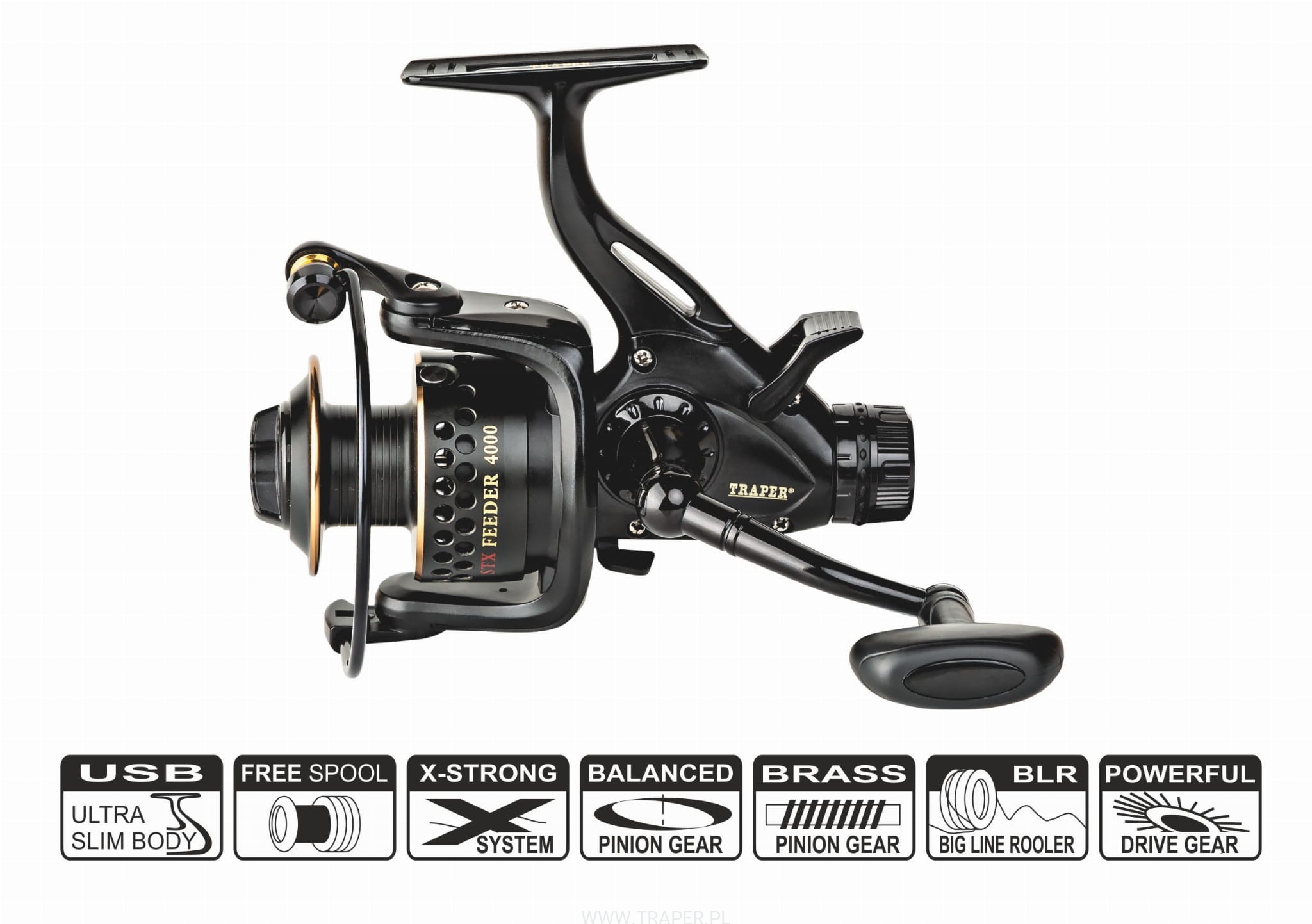 Specjalistyczne kołowrotki do Feedera. Posiadają precyzyjny mechanizm wolnego biegu z płynną regulacją. Kołowrotki zostały wyposażone w bardzo dokładny, przedni hamulec na szpuli, doskonale sprawdza się w czasie długiego holu okazałej ryby. W korpusie kołowrotka kryje się solidny i bezawaryjny mechanizm.