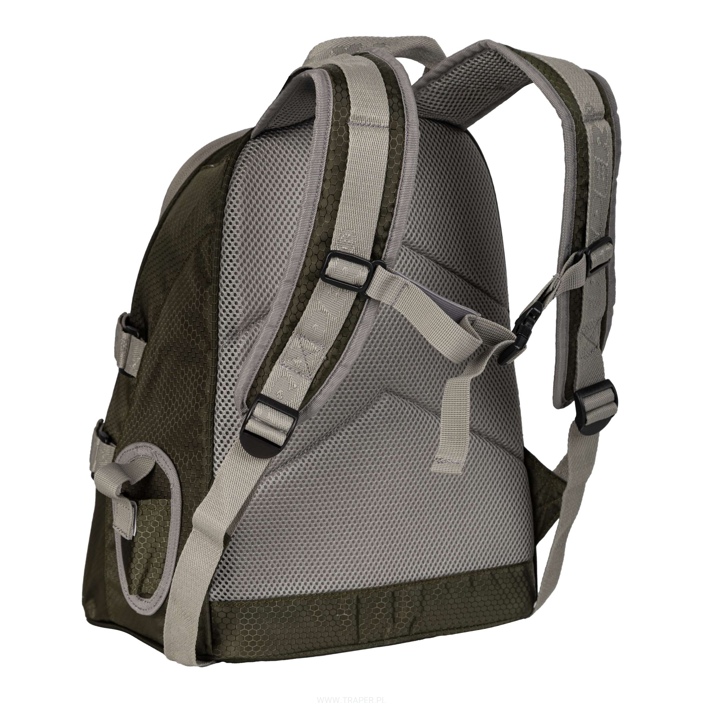 Plecak Medium Active to kompaktowy, a jednocześnie wyjątkowo pojemny model, zaprojektowany z myślą o aktywnych wędkarzach. Wykonany z trwałego materiału o strukturze plastra miodu, odpornego na przetarcia i działanie czynników zewnętrznych, gwarantuje niezawodność każdych warunkach terenowych. Posiada pojemną komorę główną, którą możemy podzielić na dwie części, za pomocą przegrody przytwierdzanej na rzep. Górna, funkcjonalna kieszeń z przodu umożliwia dostęp do komory plecaka. Dodatkowo na klapie umieszczono małą kieszonkę zamykaną na zamek z zaczepem do podbieraka. Przez dolną, zasuwaną kieszeń z parcianymi pasami sięgniemy do dolnej komory wewnętrznej. Boczne kieszenie z elastycznej siatki idealnie nadają się na butelki lub inne, podręczne przedmioty. Ergonomicznie ukształtowane szelki i tylna część plecaka zostały wyścielone miękką siatką, zapewniającą dobrą wentylację. Pas piersiowy oraz paski stabilizujące, pomogą równomiernie rozłożyć ciężar i zwiększyć wygodę noszenia. Wielkość: ( 38 x 28 x 20 cm)