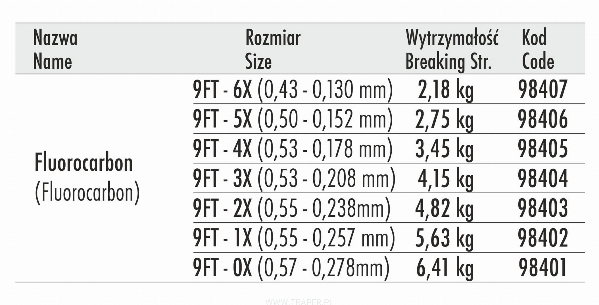 Kod produktu: Tapered leader Fluorocarbon TRAPER