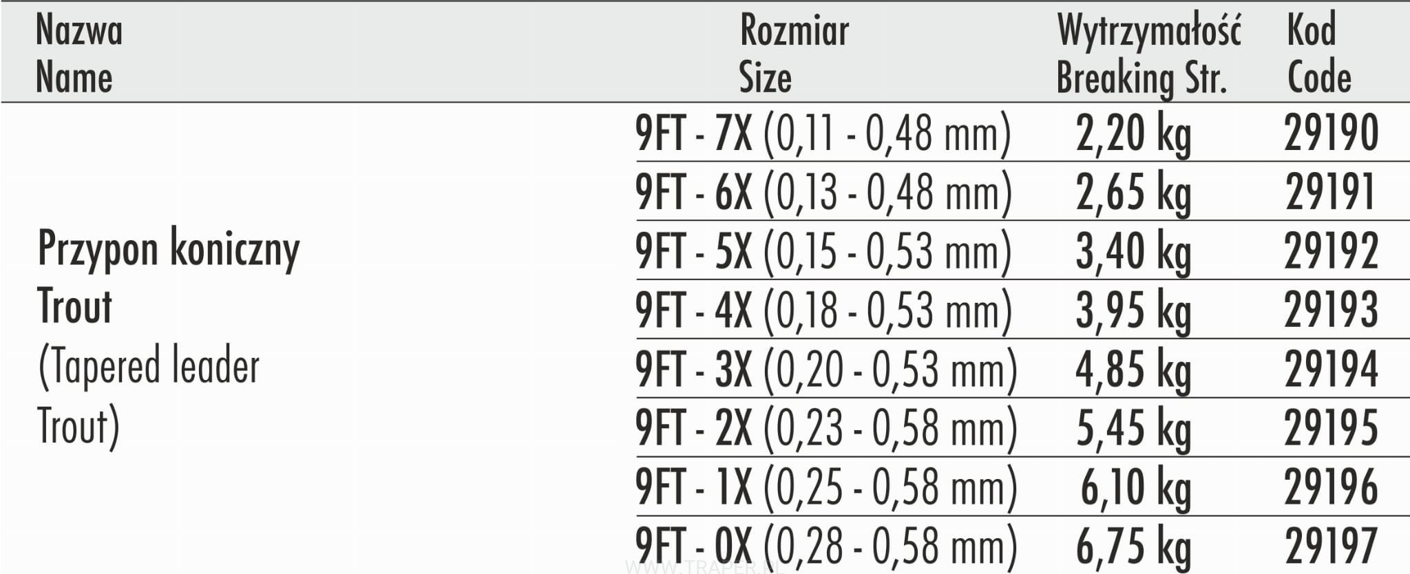 Japońskie, monolityczne przypony koniczne bezbarwne z pętlą. Super mocne, odporne na przetarcia, o podwyższonych parametrach wytrzymałości liniowej oraz na węzłach. Jedna sztuka w opakowaniu.