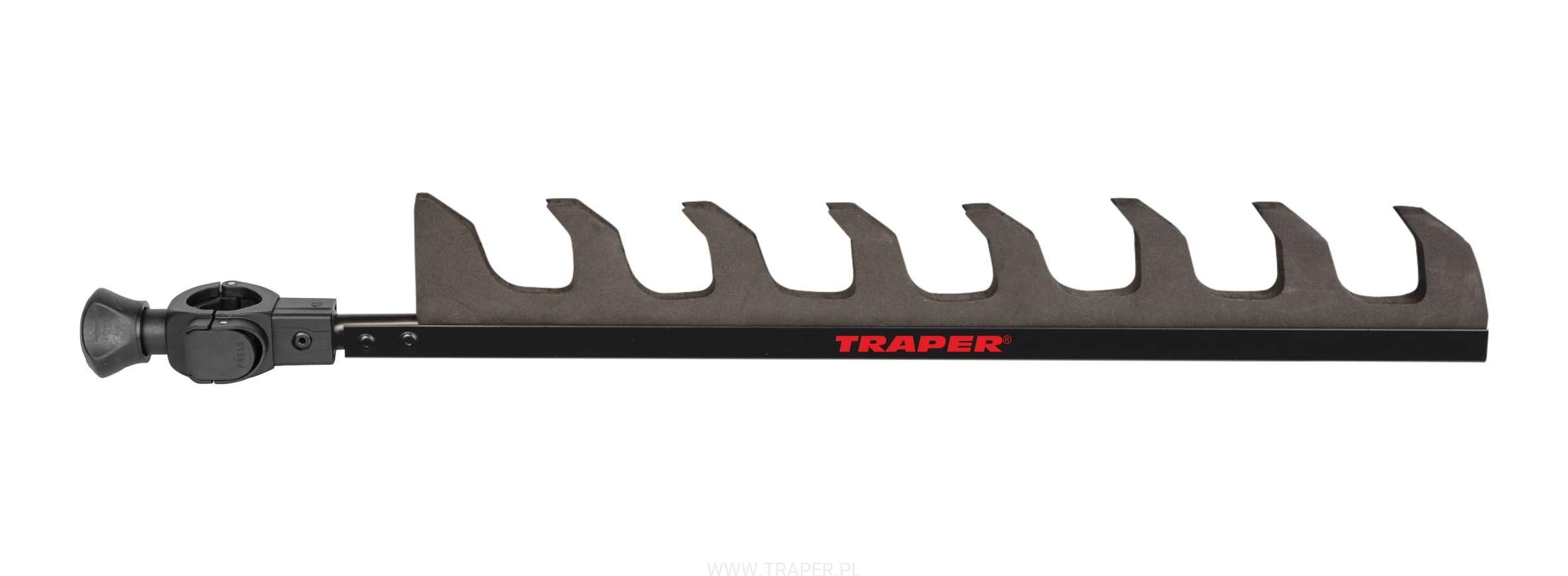 Grzebienie stanowią doskonałe i bezpieczne wsparcie do wędzisk i topów. Wycięcia w miękkiej piance doskonale utrzymują wędziska i topy w czasie wiatru. Podpórki posiadają belki, które mocujemy do nóg kosza lub platformy. Inne zainstalowane zostały na składanych statywach z regulacją wysokości.