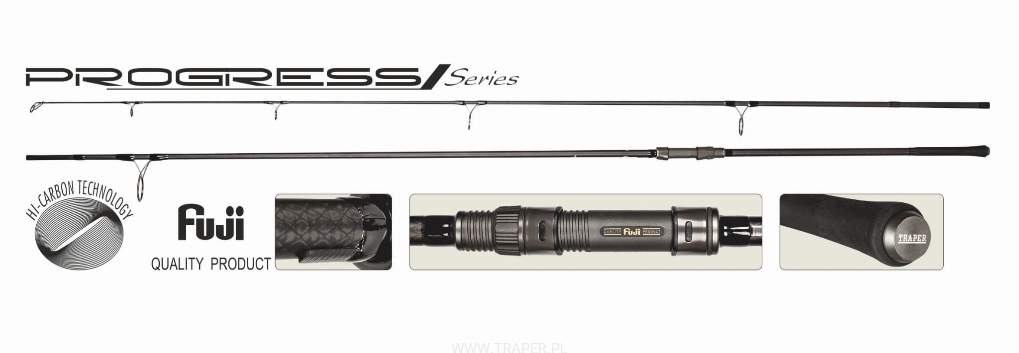 W pełni profesjonalne wędziska do połowu okazów. Charakteryzują się nienaganną równomierną akcją oraz bardzo dużą wytrzymałością. Jest to istotna cecha szczególnie przydatna przy dalekich wyrzutach i długotrwałych zmaganiach z dużymi rybami. Wędka Progress jest wędziskiem bardziej elastycznym, o większym ugięciu. Jest uzbrojona w uchwyty do kołowrotków markowej firmy Fuji, przelotki typu SIC w maksymalnie dużych rozmiarach o bardzo lekkiej i cienkiej ramie. Łączenie elementów wędziska typu spigot daje gwarancję dużej trwałości złączom. Bardzo dokładne wykończenie wszystkich elementów daje wysoki efekt estetyczny