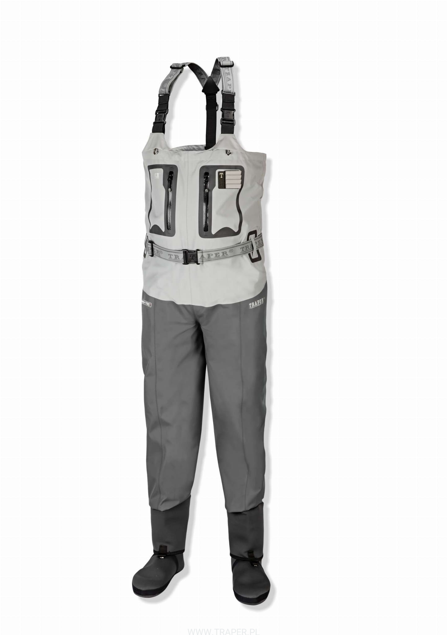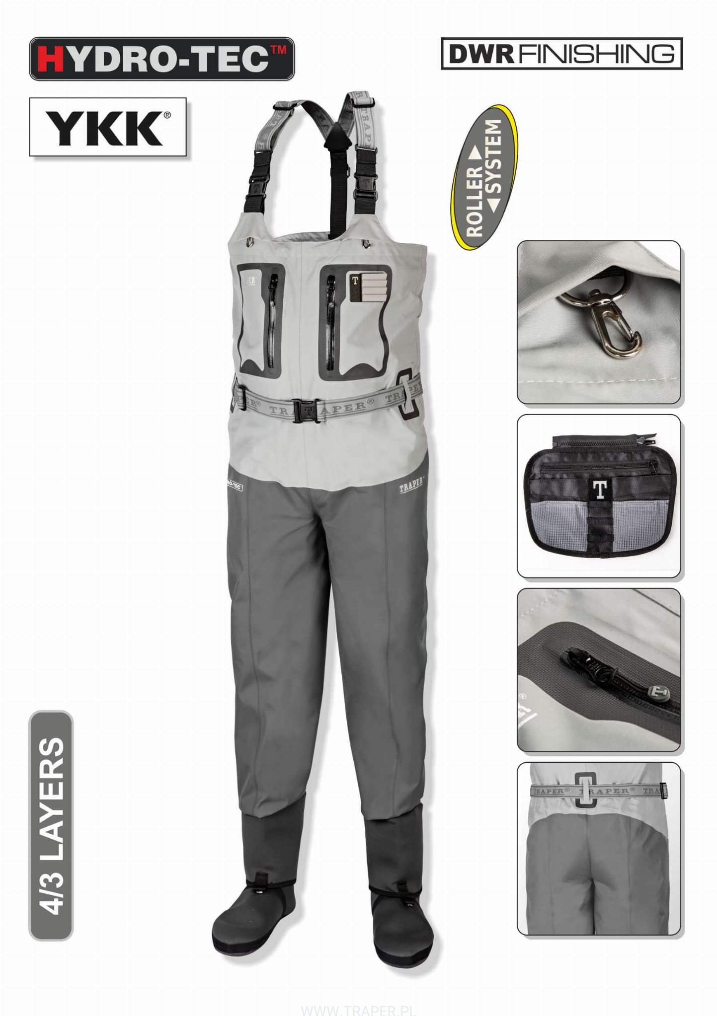 Yukon Light to kolejna wersja naszej nowej serii. Elementem charakterystycznym są dwie kieszenie na bokach woderów. Kieszenie te zostały wyposażone w niezawodne zamki YKK. Na zewnętrznej części jednej z nich umieszczono patkę na przynęty. Wywijana kieszeń wewnętrzna składa się z pięciu komór w tym dwóch zasuwanych. Istnieje możliwość wymiany tej kieszeni na kieszeń wodoodporną znajdującą się w naszym katalogu. Pod szelkami umieszczone są dwa zaczepy na szczypce i obcinaczkę. Z tyłu na szelkach znajduje się zaczep do podbieraka. Dolna część woderów posiada osłonę przeciw żwirową i wykonana jest z czterowarstwowego materiału. Górna część składa się z trzech warstw. Wodery posiadają system rolowania dla lepszego komfortu w upalne dni. W komplecie elastyczny pas biodrowy